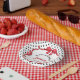 Elegant red bow and ribbon with polka dot background, birthday paper bowls, change the text to anything you want when ordering