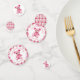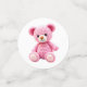 Pink and white crocheted teddy bear girl's baby shower confetti. An adorable pink teddy bear crocheted with pink and white yarn adds the sweetest touch.