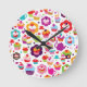 Cute cup cake and tea pot round clock