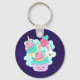 A keychain with a cute illustration featuring a cupcake and ice cream smiling with joy. A rainbow and hearts surround the drawing. A cute fluffy cloud is also smiling with happiness. The cupcake and ice cream have a trendy unicorn horn on top. Cute and adorable design full of joy.
