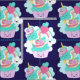 Patterned fabric with a cute illustration featuring a cupcake and ice cream smiling with joy. A rainbow and hearts surround the drawing. A cute fluffy cloud is also smiling with happiness. The cupcake and ice cream have a trendy unicorn horn on top. Cute and adorable design full of joy.