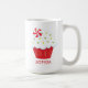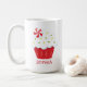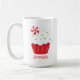 Cute cupcake personalised Christmas mug is a fun kids hot chocolate or kids Christmas holiday mug. This Xmas mug features a cute cupcake wearing a green scarf. Personalise with name.