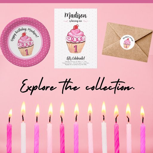 First Birthday Cute Illustrated Pink CupcakeDesigned by Dena Macdonald