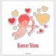 Vibrant cartoon cupid with wings, a red dress, and a bow flies across a heart-filled red backdrop. Perfect for Valentine, romance, and family-themed projects.