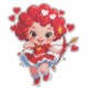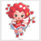 Vibrant cartoon cupid with wings, a red dress, and a bow flies across a heart-filled red backdrop. Perfect for Valentine, romance, and family-themed projects.