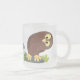 Cute curious funny brown owl cartoon illustration frosted glass coffee mug