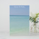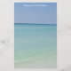 This beautiful ocean photograph features pretty clear blue water rolling up onto the shore of the beach. The pretty light blue of the sky and sea along with the light sand of the beach make the perfect background to compose your letters on while on summer vacation. Classy stationary for a beach house to leave for their guests to leave reviews on their vacation home.
