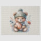 Custom tissue paper with text you can customise. Modern design with flowers and a cute bear holding a football. Ecru background. Merry Christmas greeting but you can also customise the text with your desired name or phrase. Use the template to create your own custom tissue paper.