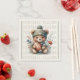 Custom paper napkins has a football theme with a feminine touch. Modern design with flowers and a cute bear holding a football. Ecru napkin shown. Customise the text on the napkin with your desired name or phrase. Great for football fans and those having a football theme party. Use the template to create your own custom paper napkins.