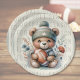 Custom paper plates have a football theme with a feminine touch. Modern design with flowers and a cute bear holding a football. Ecru background. Customise the text on the plates with your desired name or phrase. Great for football fans and those having a football theme party. Use the template to create your own custom paper plates.