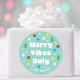 Get into the festive spirit with these cute personalized stickers! A playful design with snowflakes, hearts, stars and Christmas trees, all adding to the cheerful vibe. The template incorporates simple typography with the phrase “Merry Vibes Only”, and is customized with your name. A fun, modern retro style that's perfect for Gen Z, teens, and young adults. Custom stickers are perfect for adding a personal touch to gift wrap, envelopes, party favors, or embellishments for holidays, birthdays, and other special occasions. Printed colors: green, red, blue, yellow and white — or change the colors with the design tool. Available with a matte or glossy finish.