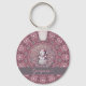 Cute Custom Name Whimsical Pink Snowman Mandala Key Ring