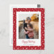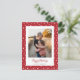 Cute custom red photo holiday postcards featuring stars and a beautiful festive script title. Easily personalise these red photo holiday postcards with your image and a family name. Custom Merry Christmas title available inside the design tool - make it visible by customising this template further. The background, title and text can be personalised to any colour.