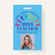 Cute Custom School Teacher Rainbow Name Blue ID Badge