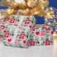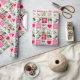 Romantic Valentines Day photo collage wrapping paper with a couple's engagement photos or wedding pictures next to cute red hearts and pretty red and pink squares.