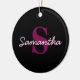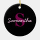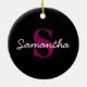 Cute Customisable Pink & Black Monogram Script Ceramic Tree Decoration