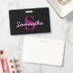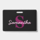 Cute Customisable Pink & Black Monogram Script ID Badge