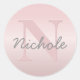 Cute Customisable Pink Monogram & Your Name Script Classic Round Sticker