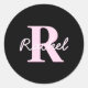Cute Customizable Monogram | Light Pink & Black Classic Round Sticker