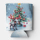 Cute Cyberpunk Reindeer with Christmas Tree Can Cooler