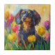 This charming painting features an adorable dachshund sitting among a vibrant field of colourful tulips, capturing a playful and heartwarming scene. The rich colours and expressive brushstrokes make it a perfect piece for dog lovers and spring-themed decor.