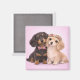 This charming illustration features an adorable dachshund couple sitting close together against a soft blush pink background. With their long bodies, floppy ears, and sweet expressions, this artwork captures a playful and romantic puppy-love vibe that dachshund fans adore.