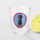 Cute Dachshund or Your Pet Face Photo on Blue Red Shot Glass