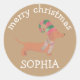 Cute Dachshund puppies dog lover Merry Christmas Classic Round Sticker