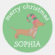 Cute Dachshund puppies dog lover Merry Christmas Classic Round Sticker