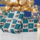 This Christmas gift wrapping paper roll features two adorable dachshund puppies in a winter snow scene, in a watercolor style illustration. The festive paper is patterned, with the picture in a checked design, with blue squares and text in between. Ideal for dog lovers, the gift wrap can be personalised with a name or other text for the finishing touch.