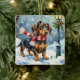 Cute Dachshund Puppy Cozy Winter Scarf Art Ceramic Ornament