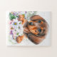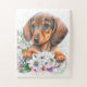 Cute Dachshund Puppy Watercolor Floral Dog Jigsaw Puzzle