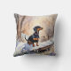 Cute Dachshund Winter Snow Watercolor Dog Breed Cushion