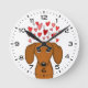 Cute Dachshund with Hearts Wiener Dog Round Clock