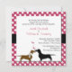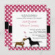 Cute wedding invitation done in a fun watermenlon pink, with white polka dot background. A white text area over the background is decorated, with a brown and a black dachshund, with hearts between them. All text is customisable to suit your wedding needs. Adorable dog lovers wedding invitation for the fun loving couple.