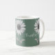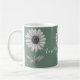 Cute monocromatic Daisy flower in a boho green background coffee mug. Personalise with name or text. Adjust font type and colour to your preference.