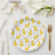 NewParkLane - Cute paper plates for your Easter lunch or brunch, with a pattern of cute dancing / running yellow Easter chicks with greenery and little pink hearts.