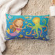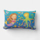 Blue, pink, green and turquoise cute dancing Mermaid and happy octopus are ready to celebrate deep under the sea with tons of little fish friends with this casual throw pillow. Toss it on the bed the couch or any chair that needs an extra touch.