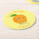 Cute dancing orange citrus fruit round paper coaster
