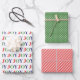 Charming and vibrant Christmas holiday wrapping paper sheets set, featuring a colourful "JOY" word art design, polka dots and stripes in traditional English holiday colours red, green, dark blue, and white. This vintage, funky, and modern hipster style is perfect for anyone who loves winter and December holiday themes. It's a fun choice for wrapping delightful surprise gifts or Christmas presents!