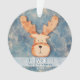 Cute Deer Baby`s First Christmas Ceramic Ornament. Cute deer on blue winter background. Personalise the ornament with your baby's name and the year of birth and make your own Christmas keepsake.