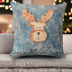 Cute Deer Blue Christmas Holiday Throw Pillow. Christmas pillow with a fun and cute deer on blue winter background. Merry Christmas is text in a trendy white script - you can change or erase it. It is a print of a deer head cut out of wood on a painted wood plate.