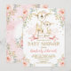 Cute Deer Girl Baby Shower Blush Pink Gold Roses Invitation