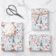 Wrapping paper sheets with an adorable Christmas pattern. Cute winter deer with antlers prancing around a forest of trees and grasses.
