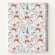 Spiral notebook with an adorable Christmas pattern. Cute winter deer with antlers prancing around a forest of trees and grasses.