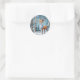 Personalise this Cute Deer in Winter Woodlands Christmas Classic Round Sticker with a custom greeting and family name.