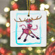 Cute Deer on ice Funny Christmas holidays Cartoon Ceramic Ornament
