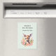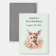 Party save the date magnet with a beautiful illustration featuring a cute deer. Surrounded by pink roses and flowers.