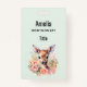 Name badge with a beautiful illustration featuring a cute deer. Surrounded by pink roses and flowers.