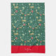 Cute deer with Christmas trees and snowflakes Tea Towel